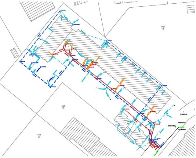 In einem ersten Schritt werden für die acht Liegenschaften in der Stadt Zeven Untersuchungen durchgeführt. Alle sichtbaren Entwässerungsbestände werden koordinatengenau vermessen. Über die vorhandenen Revisionsöffnungen (Schächte, Abläufe, Fallrohre etc.) werden die Kanäle mittels TV-Kameras befahren. Unbekannte Haltungsverläufe werden geortet und eingemessen. Der Zustand der Kanalisation wird aufgenommen und in die Datenbanken eingelesen. Es findet eine bauliche Klassifizierung statt.